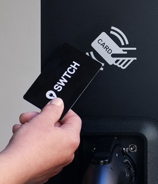 For maximum convenience, request a complimentary RFID charge card through the SWTCH app – providing tap-and-go charging at most SWTCH EV charging stations.